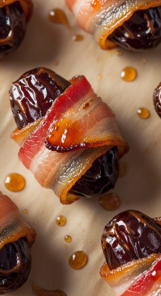 Bake them straight from frozen for about 25 minutes. The bacon gets crispy while the dates turn jammy and sweet. That salty-sweet combo never fails to disappear fast.