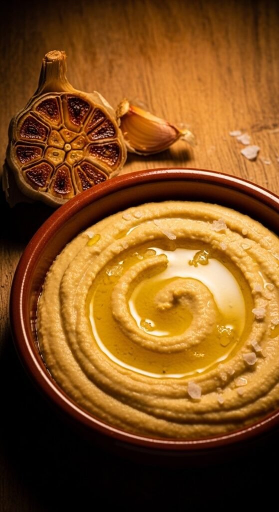 Roasting garlic completely changes its character. Raw garlic is sharp; roasted garlic is sweet and mellow. Wrap a full head in foil with olive oil and bake at 400°F for 40 minutes. Squeeze the cloves straight into your blender with the chickpeas. No extra cost, just extra time. The result is a deeply savory hummus that pairs beautifully with flatbread or crudités. Great for dinner parties or casual snacking.