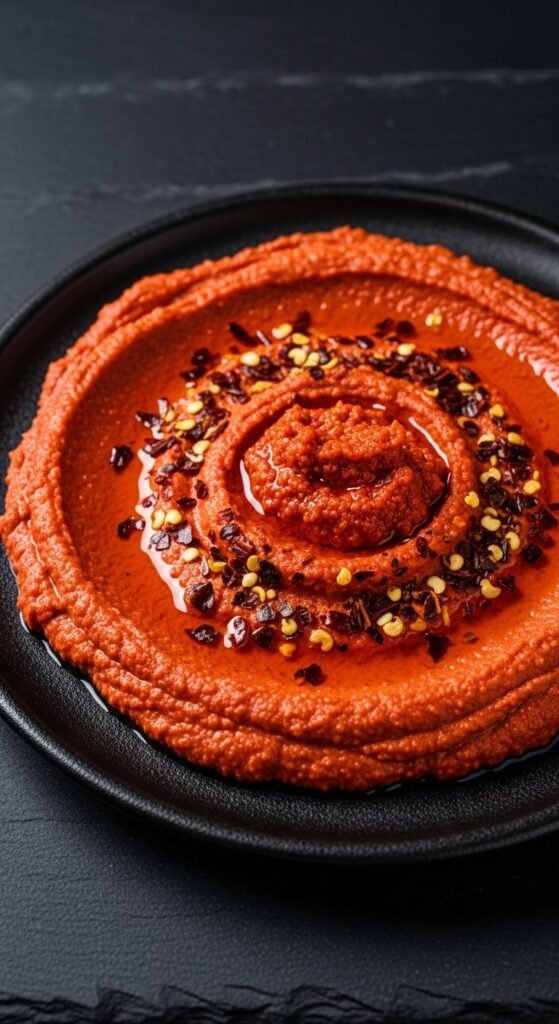 For anyone who likes heat, harissa hummus is a simple upgrade. Harissa paste is a North African chili blend available at most grocery stores for around $3–4. Start with 1–2 tablespoons blended into your classic base, then adjust to taste. Add cumin and a squeeze of lemon to balance the heat. The color turns a deep orange-red that looks stunning in a bowl. Serve alongside grilled meats or use as a sandwich spread.