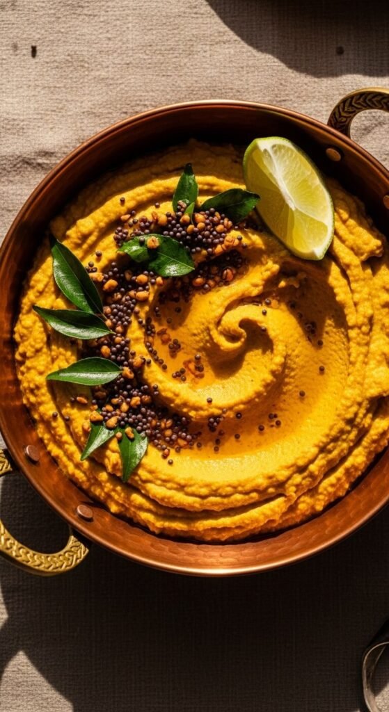 Curry powder transforms hummus into something warming and complex. Use 1–2 teaspoons of good curry powder, a pinch of turmeric, and a squeeze of lime. Skip the tahini if you want a lighter version — replace with a bit of yogurt or extra olive oil. Top with fried mustard seeds in oil for a finishing touch. This version works great as a side for Indian-inspired meals or grain bowls. Inexpensive to make and very satisfying on a cold day.