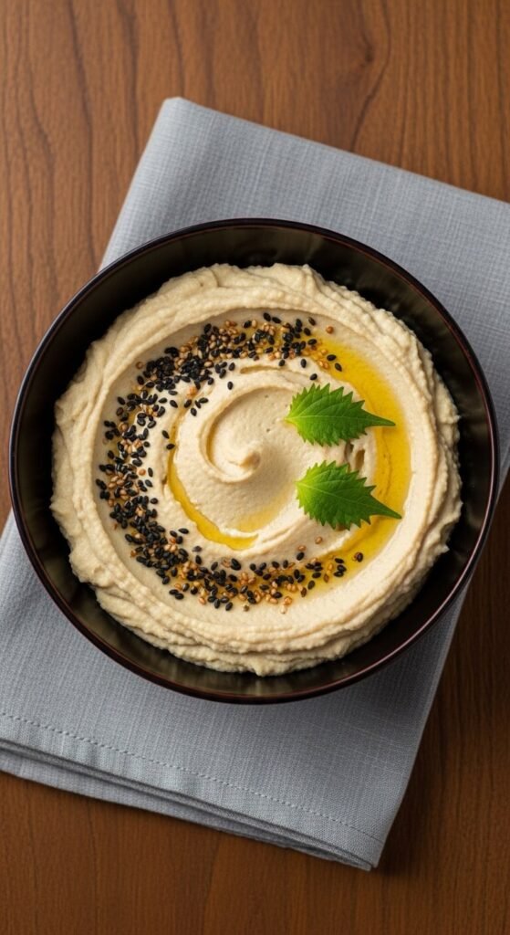 White miso adds a subtle, fermented umami depth that regular hummus lacks. Use one tablespoon of white miso per can of chickpeas — it’s mild enough not to overpower. Blend with tahini, lemon, garlic, and sesame oil instead of olive oil. The result is creamy, savory, and slightly complex. Garnish with toasted black sesame seeds. White miso paste costs about $4–6 at Asian grocery stores and keeps in the fridge for months.