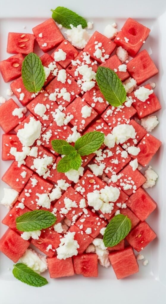 Cube watermelon and top with crumbled feta and fresh mint. Drizzle with balsamic reduction if you’re feeling fancy. This takes 5 minutes and works for hot weather parties. The salty feta balances sweet watermelon perfectly. Buy feta in blocks and crumble yourself—pre-crumbled costs twice as much. Make just before serving so watermelon stays crisp. Each bite is refreshing and unexpected.