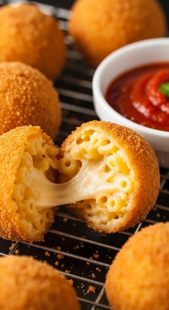Make mac and cheese, let it cool, then roll into balls and coat with breadcrumbs. Fry or bake until golden. Use leftover mac and cheese to avoid waste. These freeze beautifully—make a batch and save for later. The outside gets crunchy while inside stays creamy. Dip in marinara or ranch. Each ball is a perfect handheld portion.