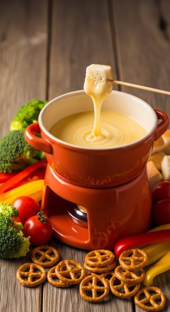 Melt shredded cheddar with beer, garlic powder, and a splash of milk. Keep it warm in a slow cooker or fondue pot. Any beer works—even cheap lager adds great flavor. Serve with bread cubes, soft pretzels, and broccoli florets for dipping. This feeds a crowd for under $10. Add a teaspoon of mustard for tang. The cheese stays smooth and creamy for hours.