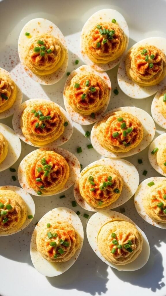 Boil eggs for 10 minutes, then plunge into ice water. Mix yolks with mayo, mustard, and relish. Pipe filling back into whites using a plastic bag with the corner cut off. Sprinkle paprika on top for color. One dozen eggs makes 24 halves for under $3. Add bacon bits or hot sauce for variety. These keep refrigerated for 2 days.