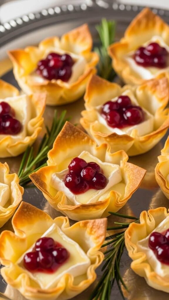 Place brie chunks in phyllo cups. Top with cranberry sauce and bake 10 minutes at 350°F. The cheese melts perfectly while phyllo stays crispy. Use leftover cranberry sauce from Thanksgiving. Generic brie costs less and melts identically to expensive brands. Make these in mini muffin tins without phyllo cups. Fresh rosemary on top adds fancy flavor.