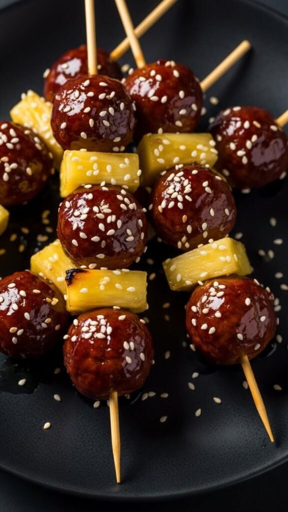Thread frozen meatballs and pineapple chunks onto skewers. Brush with teriyaki sauce and bake 15 minutes at 375°F. The pineapple caramelizes beautifully. Frozen meatballs cost less than making from scratch. Use canned pineapple chunks—cheaper than fresh and perfectly sized. Double-glaze halfway through baking for extra flavor. These work as a meal or appetizer.
