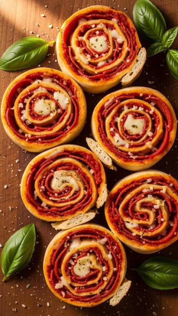 Spread pizza sauce on pizza dough. Layer cheese and pepperoni, then roll tightly. Slice into rounds and bake 12 minutes at 400°F. The pinwheel shape looks impressive but takes seconds to make. Use whatever toppings you have on hand. One tube of dough makes 20+ pieces for under $3. Freeze unbaked rolls and bake when needed.