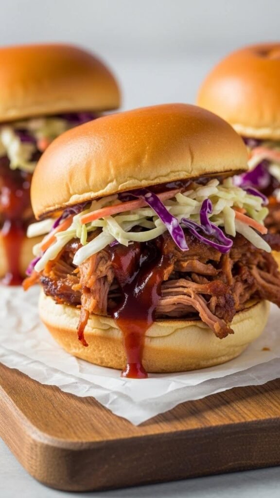 Slow-cook pork shoulder with BBQ sauce for 6 hours. Shred with forks and pile onto Hawaiian rolls. Top with coleslaw for crunch and tang. The sweet rolls balance the smoky meat perfectly. Make pork a day ahead—it tastes better after sitting overnight. One 3-pound shoulder makes 30+ sliders for under $10. Use bottled BBQ sauce to save time without sacrificing flavor.