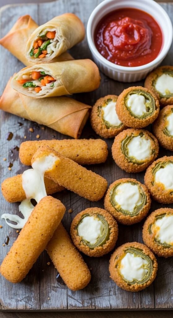 Use the right coating. For breaded appetizers, a three-step dredge (flour → egg wash → breadcrumbs) is the gold standard. Panko breadcrumbs specifically give you an extra-crunchy, light texture that regular breadcrumbs just can’t match.