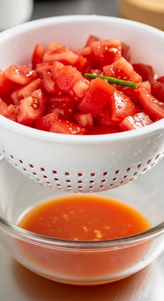 - Place the diced tomatoes in a colander or fine-mesh strainer