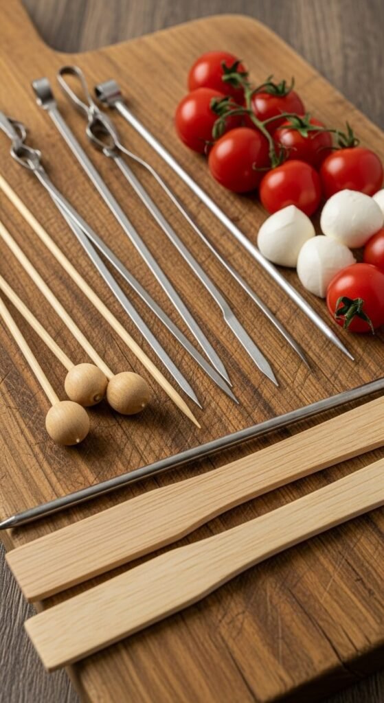 Avoid: Super-smooth metal skewers or toothpicks that are too thin. They’re pretty, but they’re basically vegetable slides.