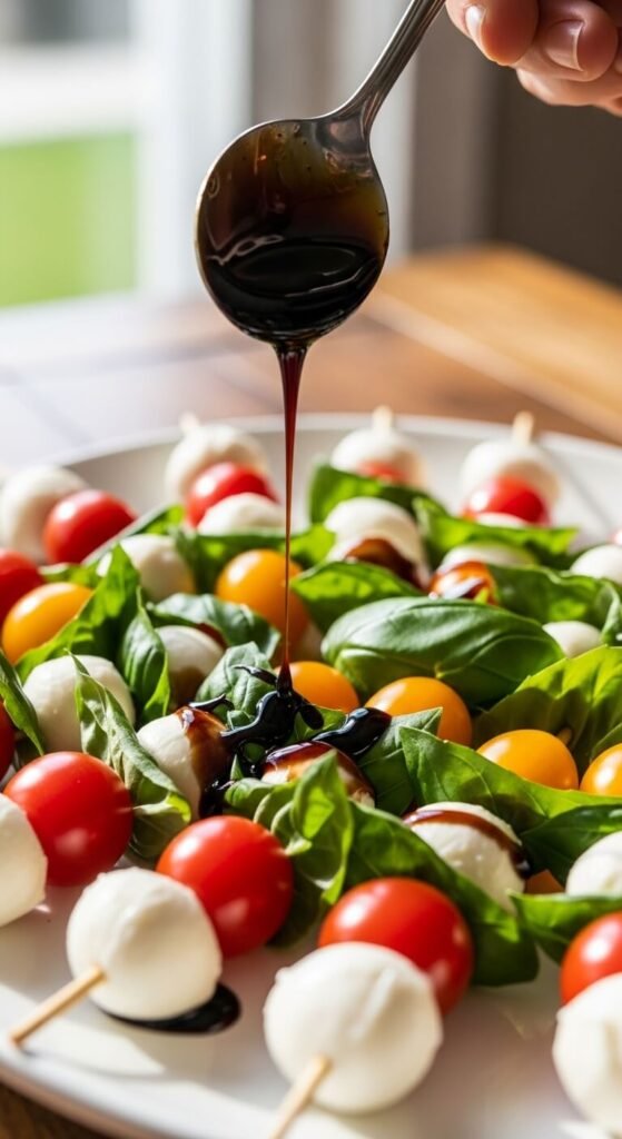With these simple tricks, your Caprese skewers will stay put from kitchen to table to the last bite. No more chasing tomatoes across your serving board or watching your beautiful presentation fall apart. Just stable, stunning, delicious appetizers that taste as good as they look.