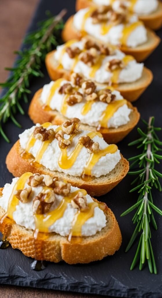 1. Whipped Feta Crostini with Honey & Walnuts