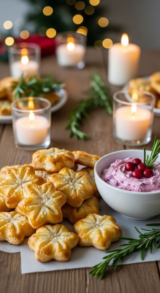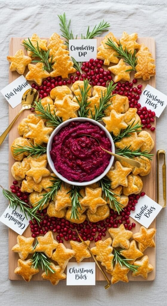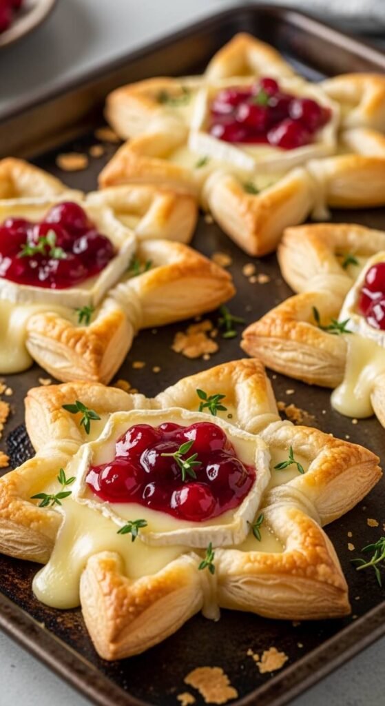 - Star-shaped tarts: Use a star cookie cutter, fill the center with brie and cranberry sauce, and bake until golden.