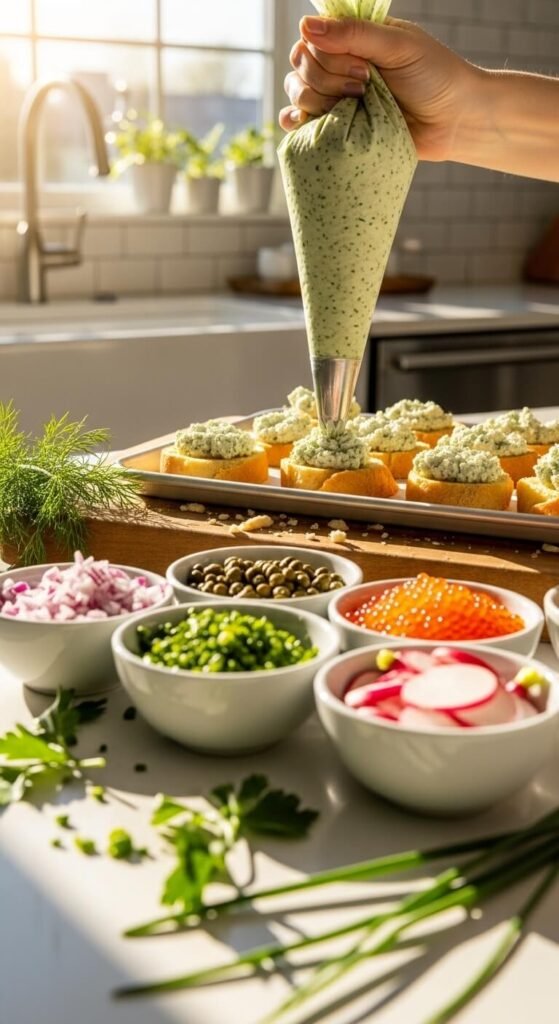 - Garnish right before serving — fresh herbs, microgreens, and citrus zest transform a simple bite into something gorgeous