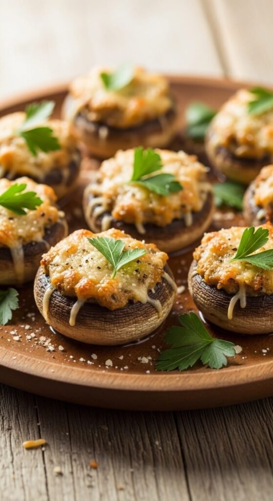- Mushroom cap + Italian sausage + cream cheese + fresh parsley