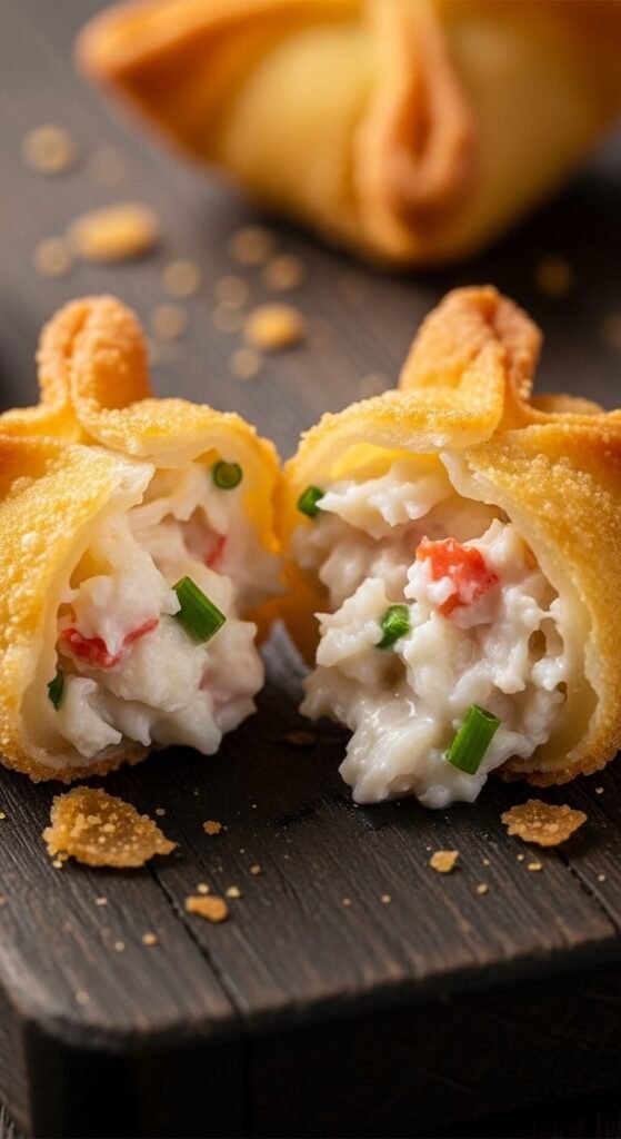 When you do it right — cold filling, no air, tight seal, hot oil — you get this: a shatteringly crispy exterior that gives way to a warm, creamy, savory center. It’s everything a crab rangoon should be, and nothing ends up floating loose in your fryer.