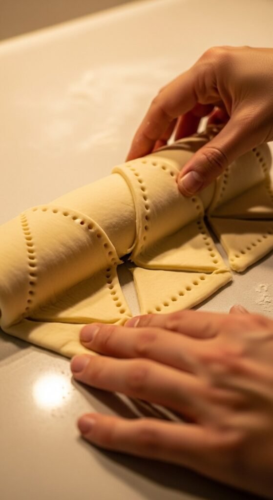 Step 1: Prep Your Dough Pop open that tube (we’ve all jumped at the sound), unroll the dough, and separate the triangles. For some recipes, you’ll keep them as triangles. For others, you’ll press the seams together to create rectangles.