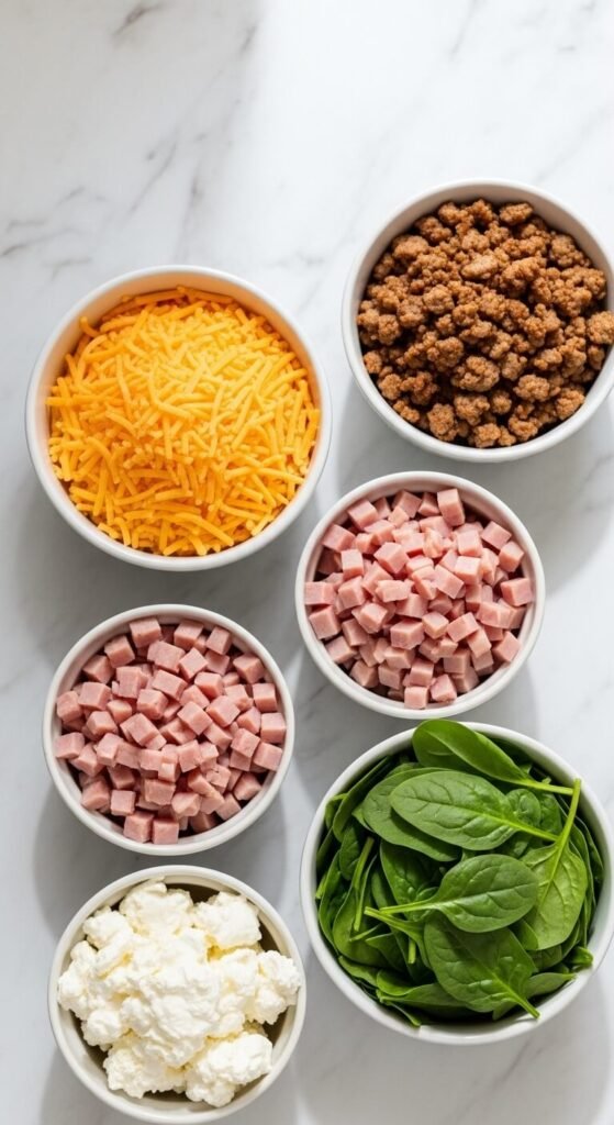 - Jalapeño Poppers: Cream cheese, shredded cheddar, diced jalapeños, and crumbled bacon