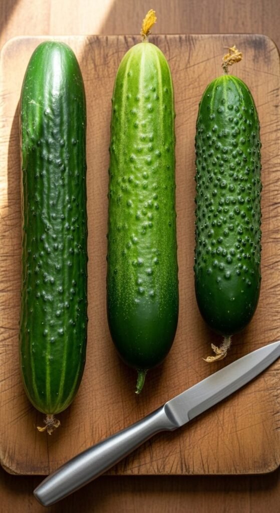 - English cucumbers are your best bet — thin skin, fewer seeds, and lower water content than standard varieties