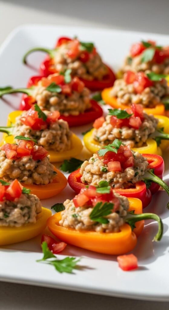 - Mini bell pepper halves instead of taco shells → sweet, crunchy, and naturally colorful
