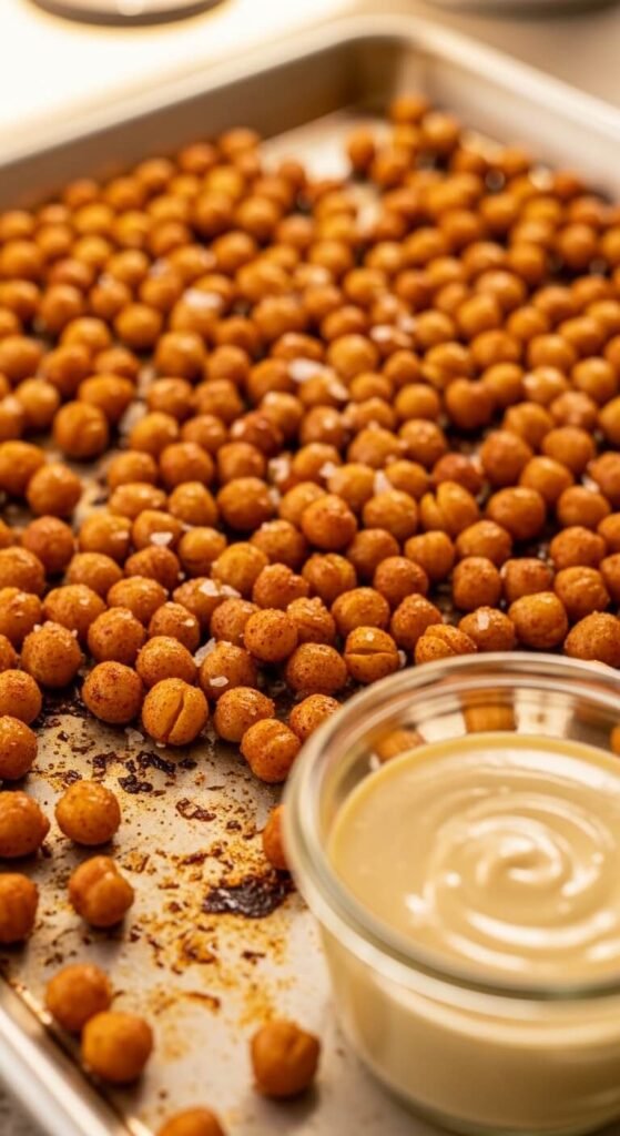 - Roasted chickpeas — toss with olive oil and spices, roast at 400°F until crunchy