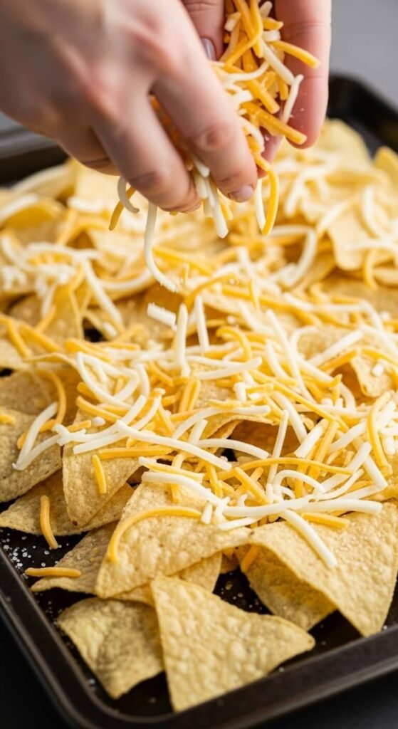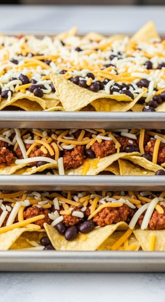 Here’s where most people go wrong: they pile all the chips on a pan, dump everything on top, and hope for the best. The result? A nacho wasteland where only the top layer gets any action.