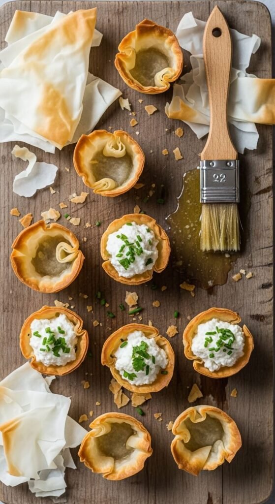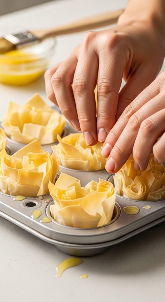 | Cups crack while baking | Dry phyllo, too few layers | Work faster, add 1–2 more layers |
