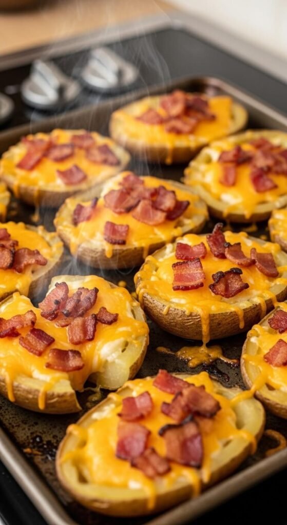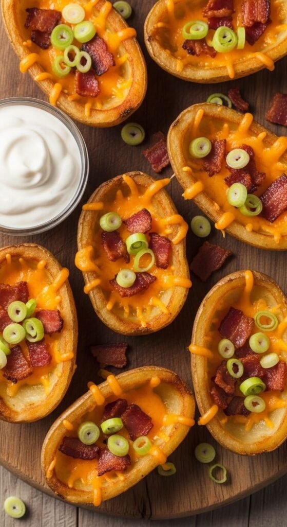 Crispy potato skins are one of those recipes that look impressive but are surprisingly simple once you know the technique. The double-bake method is your secret weapon, and generous oil or butter is your best friend. Whether you’re hosting a party or just craving the ultimate snack, these loaded potato skins will disappear fast.