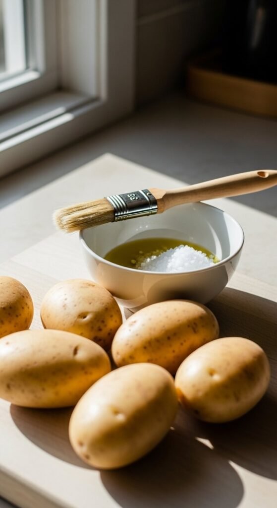 - Scrub your potatoes clean and pat them dry