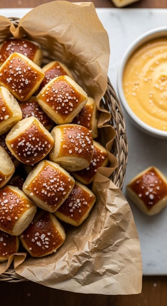 Soft in the middle, slightly chewy on the outside, golden all over, and crowned with that irresistible crunch of coarse salt — these pretzel bites are exactly what you’ve been craving since the last time you walked past a mall food court.