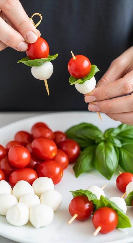 - Cherry or grape tomatoes — Firm texture, great for skewers and bites